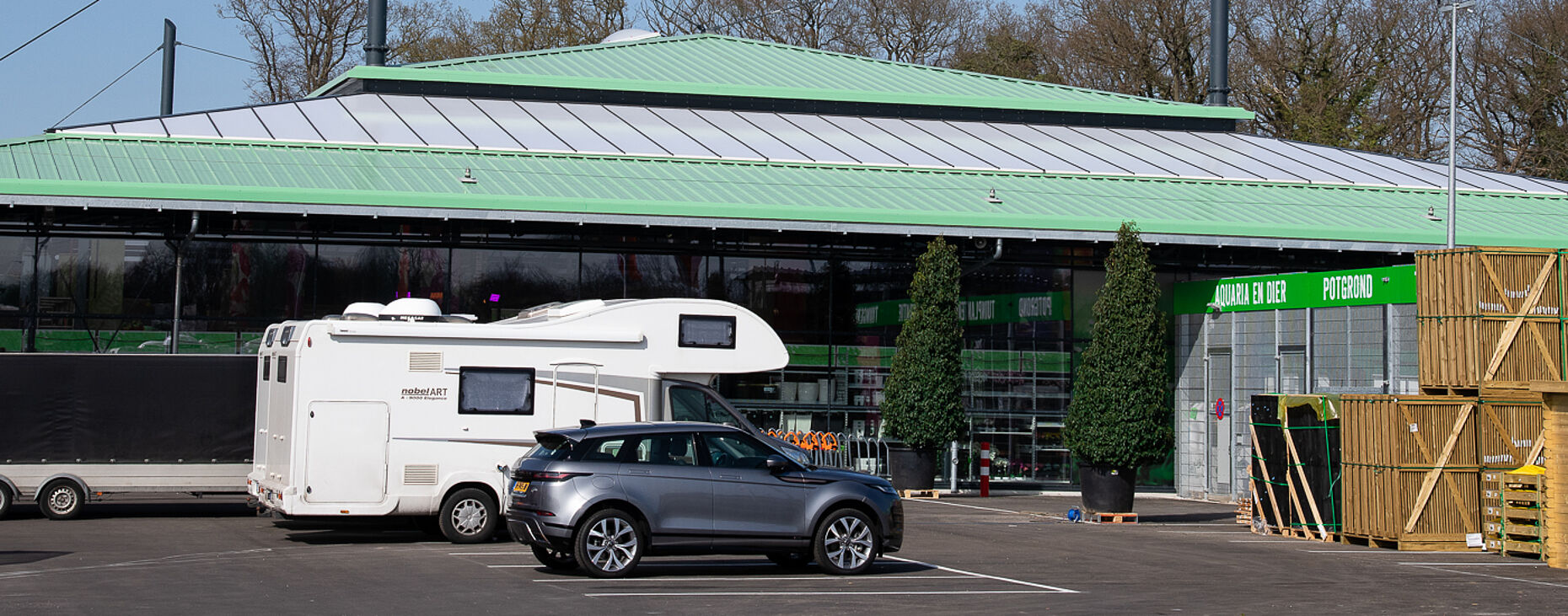 Kräss errichtete die komplette Glasfassade des neuen Gartens,- und Baumarkts von Hornbach in Enschede.
