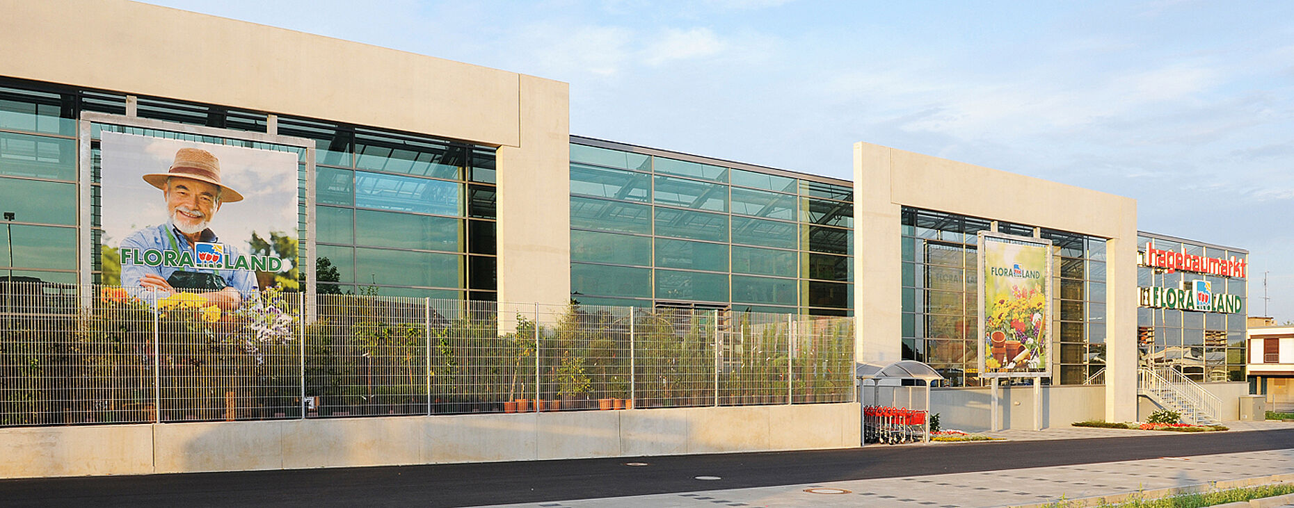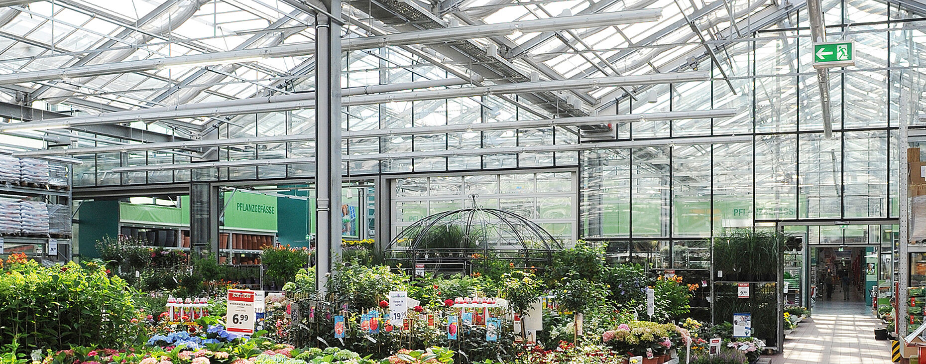 - 4-schiffiges Niedrigenergie-Gartencenter in Satteldachkonstruktion
