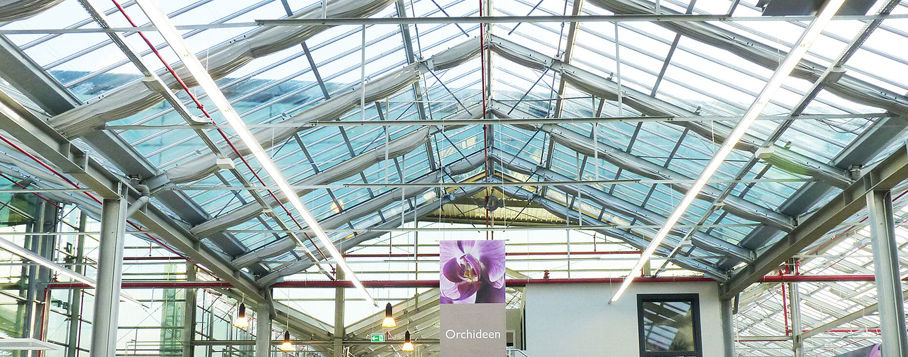 - Dachbereich: Thermo 36-Profile mit 2-fach Verglasung sowieThermo 36-Profile mit Sicherheits-Isolierglas und teilweise (Im Kassenbereich und Lager) Paneele